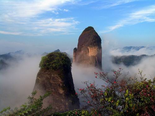 | 莨山,位于湖南省新寧縣境內(nèi)。南與桂林相連,北與張家界呼應(yīng),是國內(nèi)最為典型的丹霞地貌風(fēng)景區(qū),是國家重點風(fēng)景名勝區(qū),又是國家地質(zhì)公園,總面積108平方公里,轄紫霞峒、 扶夷江、駱駝峰、牛鼻寨、八角寨五大景區(qū),地質(zhì)結(jié)構(gòu)奇特,山、水、林、洞渾然一體。境內(nèi)有形神兼?zhèn)涞膶④娛、惟妙惟肖的駱駝峰、鬼斧神工?天下第一巷"、地造天設(shè)的鯨魚鬧海、氣勢磅礴堪稱亞洲第一的天生橋、高聳入云而又十分逼真的辣椒峰,這便是嘆為觀止的莨山六絕,這是大自然對莨山的恩賜,每一絕都舉世無雙。莨山還生長繁衍著銀杉、珙桐、華南虎、云豹、靈貓、大鯢等珍稀動植物,也為莨山的天然景色增添了無限靈動與生氣。這里出土有10萬年前的獼猴頭骨化石,有4500年前的新石器文化遺址,有清化農(nóng)民起義的寨堡,有晚清重臣劉坤一、劉長佑、江忠源的宗祠、墓葬,有異彩紛呈的民族風(fēng)情,有膾炙人口的華采詩賦,明代縣人陳永猷留下了"夫夷(新寧古稱)勝景天成就,攝杖歸來入夢頻"的美譽,著名詩人艾青留下了"桂林山水甲天下,莨山山水賽桂林"的喟嘆。