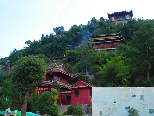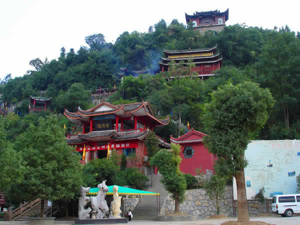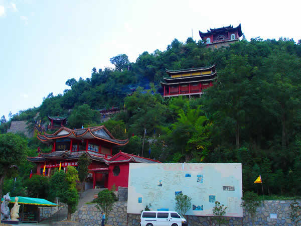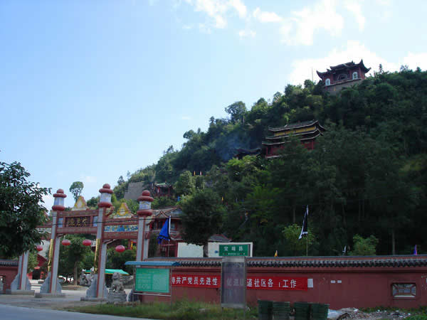 紫霞觀 紫霞觀始建于明朝嘉靖年間,近500年的歷史,在戰(zhàn)亂時(shí)期收到不同程度的破壞。紫霞觀是1992年因旅游事業(yè)的發(fā)展,教徒的信教,經(jīng)政府的批準(zhǔn),由各地的善男信女共同捐資,當(dāng)?shù)卣畵芸顢U(kuò)建起來的。道觀共有大小殿廟30余座,計(jì)5殿、3宮、2亭、2廟、1閣、八仙山、仙人足跡石、中華同心鎖等景點(diǎn)。中國(guó)著名書法家沈鵬先生為紫霞觀題寫了觀名,觀內(nèi)有國(guó)內(nèi)外著名書法家的題詞、碑刻等宗教文物,以及老子教祖講經(jīng)說法渡化圖一百余幅。