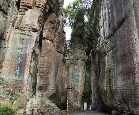 清嘉慶年間辟有洗心池。“不二門”如斧斫神劈,為石林天成,石林壁上鐫滿歷代文人的詩詠。這里古柏參天,藤蘿倒掛,環(huán)境幽美。有壁石如書的萬卷書者,有嵐霧束腰的七級(jí)青石培英塔。凝神盤坐的南海觀音是一塊天然造型的巨石,惟妙惟肖。觀音巖周圍,環(huán)繞著具有明清風(fēng)格的地藏庵、嵩山堂、水府閣等建筑物,布局靈巧緊湊,主題鮮明,因勢造景。景點(diǎn)間曲徑迂回,迷趣深?yuàn)W,稱八陣圖。景區(qū)內(nèi)的河灘上有兩處溫泉,氤氳縈繞,水溫適宜(41℃),水質(zhì)良好,能治療多種疾病?h城人民經(jīng)“不二門”前往溫泉就浴者絡(luò)繹不絕,現(xiàn)又增建了石牌坊和民俗博物館。