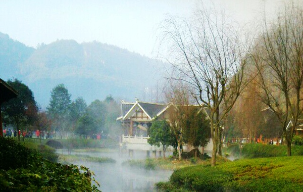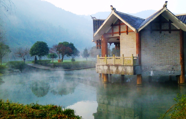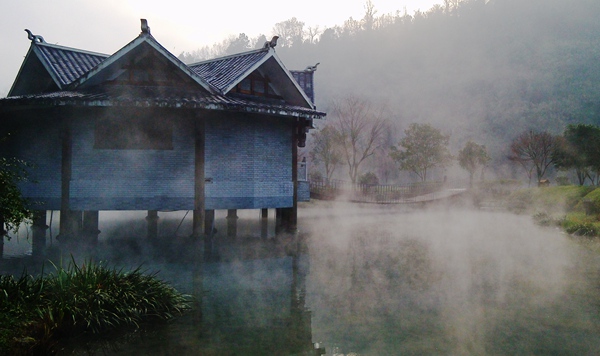 “泉源沸涌,浩氣云浮。”據(jù)了解,黃龍洞生態(tài)廣場的水源出自于洞內(nèi)的地下河,水溫常年保持在16攝氏度左右。當從洞內(nèi)流淌出來的溫暖水流與洞外的低溫空氣相遇之后,頓時形成沸騰的水汽,從而形成“浩氣”景觀。