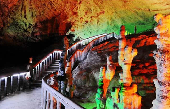 黃龍洞位于湖南省張家界市核心景區(qū)武陵源風(fēng)景名勝區(qū)內(nèi),是世界自然遺產(chǎn)、世界地質(zhì)公園張家界的有機(jī)組成部分,屬典型的喀斯特巖溶地貌,被列為國際旅游洞穴會(huì)員、全國35個(gè)王牌景點(diǎn)之一、中國首批AAAA級(jí)旅游區(qū)(點(diǎn))、中國旅游首批知名品牌、湖南省最佳旅游景區(qū)、湖南省著名商標(biāo)、張家界旅游精品線之一,享有絕世奇觀之美譽(yù)。 2005年被評選為“中國最美的旅游溶洞”。2009年,黃龍洞被評選為“中國最美的旅游奇洞”。