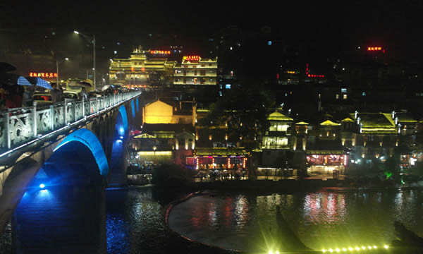 鳳凰古城是國(guó)家歷史文化名城,曾被新西蘭著名作家路易艾黎稱(chēng)贊為中國(guó)最美麗的小城。這里與吉首的德夯苗寨,永順的猛洞河,貴州的梵凈山相毗鄰,是懷化、吉首、貴州銅仁三地之間的必經(jīng)之路。作為一座國(guó)家歷史文化名城,鳳凰的風(fēng)景將自然的、人文的特質(zhì)有機(jī)融合到一處,透視后的沉重感也許正是其吸引八方游人的魅力之精髓。這座曾被新西蘭作家路易艾黎稱(chēng)作中國(guó)最美麗的小城之一的“鳳凰古城”建于清康熙時(shí),這顆“湘西明珠”是名副其實(shí)的“小”,小到城內(nèi)僅有一條像樣的東西大街,可它卻是一條綠色長(zhǎng)廊。